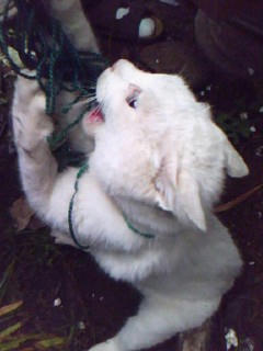 朝起きたら、庭のアサガオ用のネットに猫が絡まって動けなくなってました(爆)